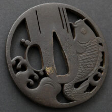 Koi Tsuba signed Eiju Seiryuken with Gold Kao